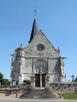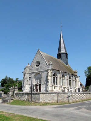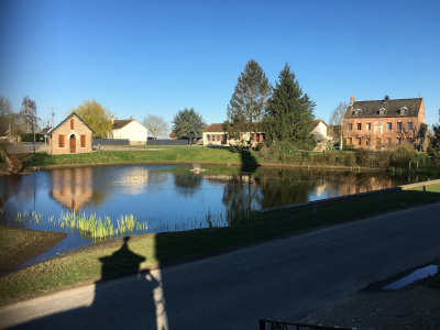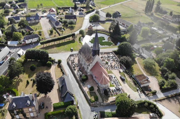 village typique du plateau du Neubourg aux maisons de pierres ou de briques.